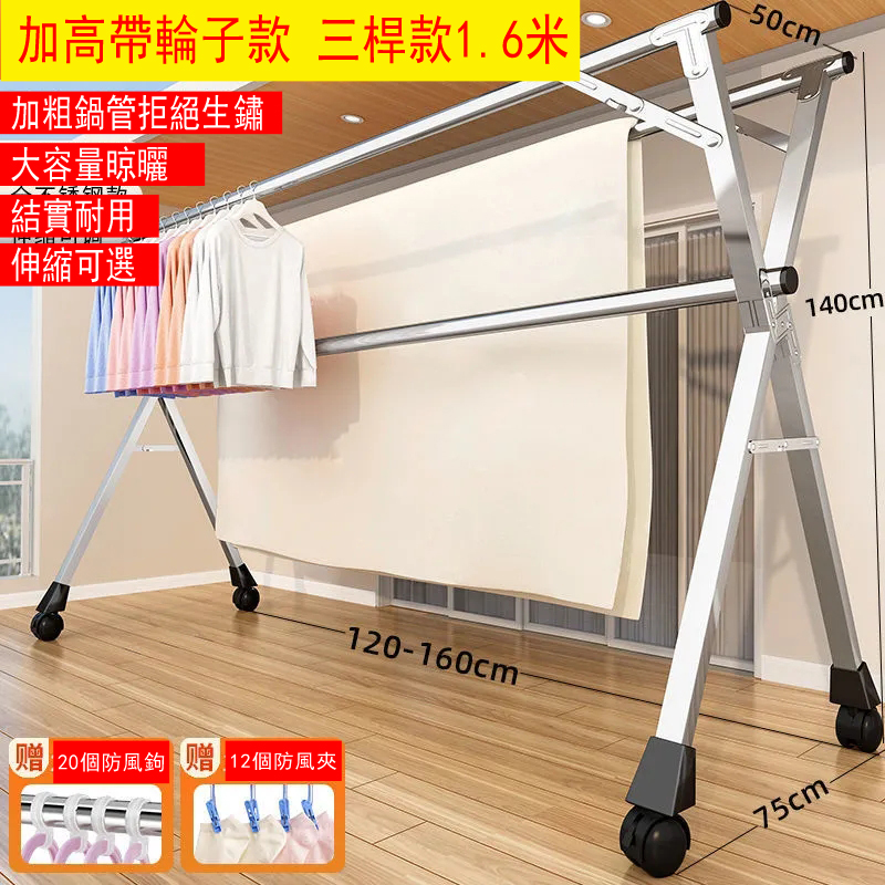 12分鐘前【下單即送20個防風掛鉤】不鏽鋼免安裝折疊家用伸縮式晾衣架 - 2025升級款加萬向輪1.6米【可伸縮-送20個防風鉤+12個防風夾】 NT$1790