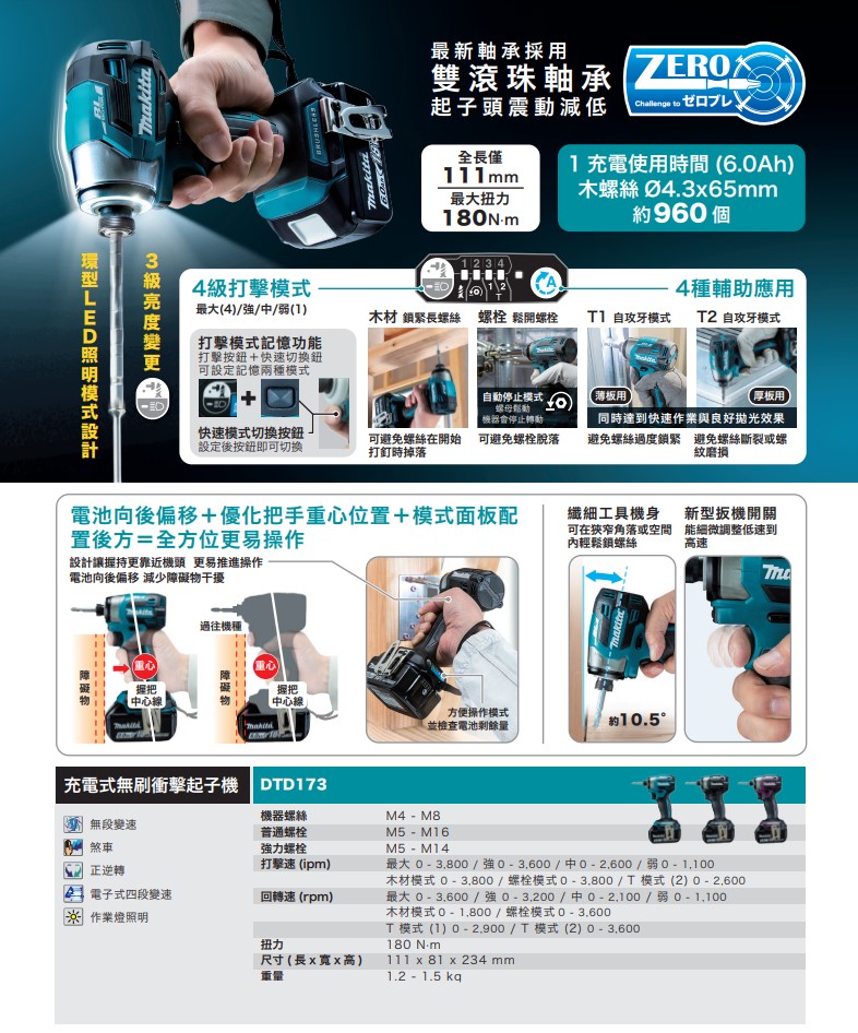 4分鐘前台灣現貨【MAKITA 牧田】 18V鋰電無刷衝擊起子機(DTD173) 日本製 強勁動力 - DTD173【1電1充+塑箱+鑽頭配備】