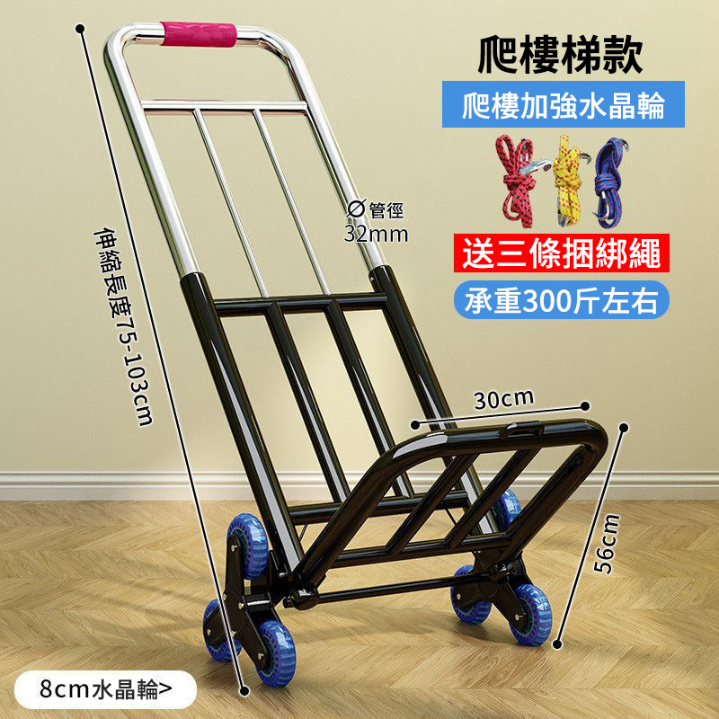 4分鐘前【折疊購物車】買菜購物免提重,爬樓搬運超省力!大容量好收納,露營野餐隨拉隨走,居家外出都好用! - 【搬家爬樓利器】特大號六輪爬樓款+3根捆綁繩 NT$1990