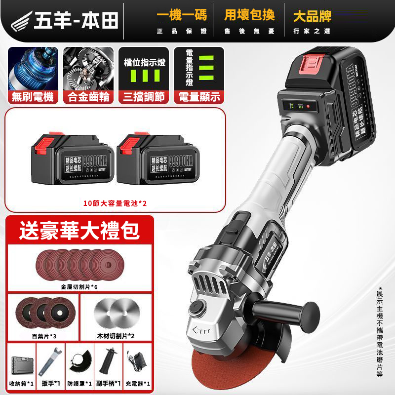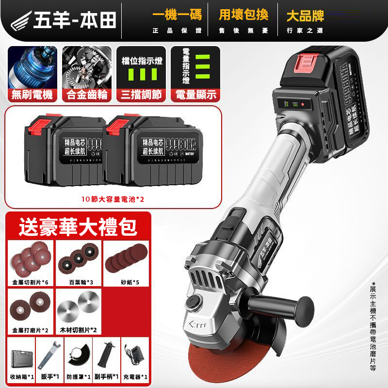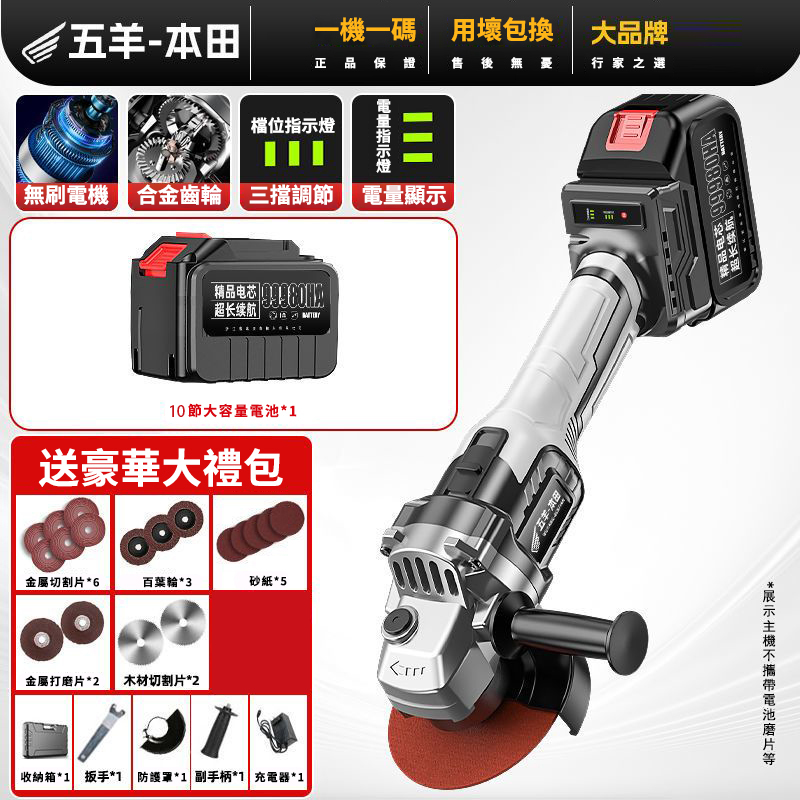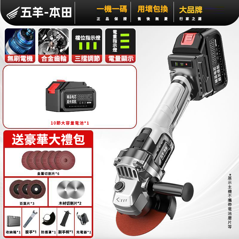25分鐘前【日本-HONDA】升級帶電顯进口無刷鋰電角磨機 打磨 拋光 切割 一機多用 純銅電機 高效散熱 配置防護護罩 保護你的安全作業 保固三年 損壞包退換 限量出清 - 69800豪華電顯款【1電池】+紙盒款