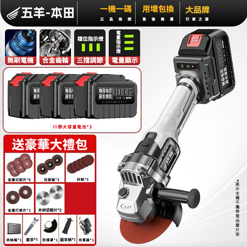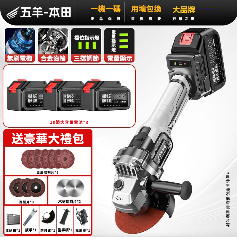5分鐘前【日本-HONDA】升級帶電顯进口無刷鋰電角磨機 打磨 拋光 切割 一機多用 純銅電機 高效散熱 配置防護護罩 保護你的安全作業 保固三年 損壞包退換 限量出清 - 69800豪華電顯款【3電池】+塑盒