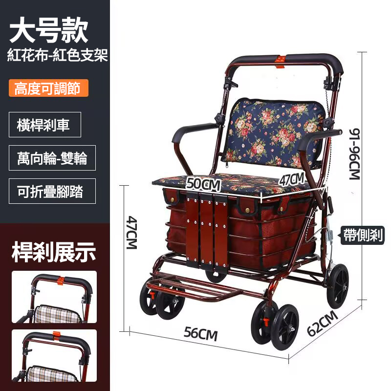 7分鐘前可折疊多功能老人代步購物車 超強承重 大容量收納 各種場景都適用,長輩們購物、散步更輕鬆! - 【大號款】老人代步購物車+帶踏板 NT$4050