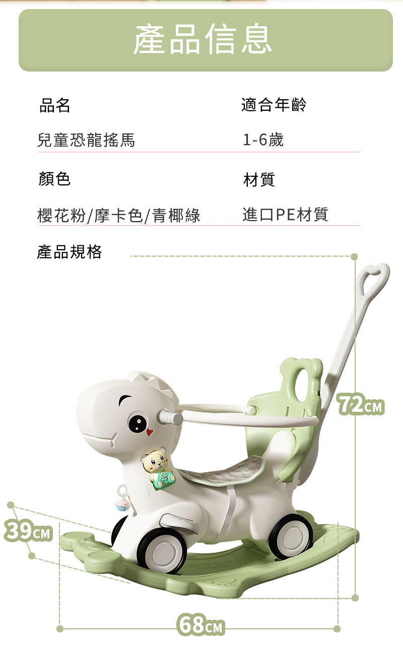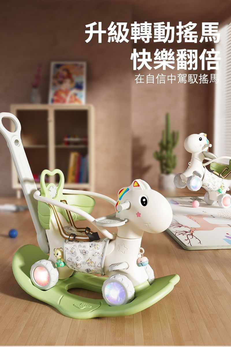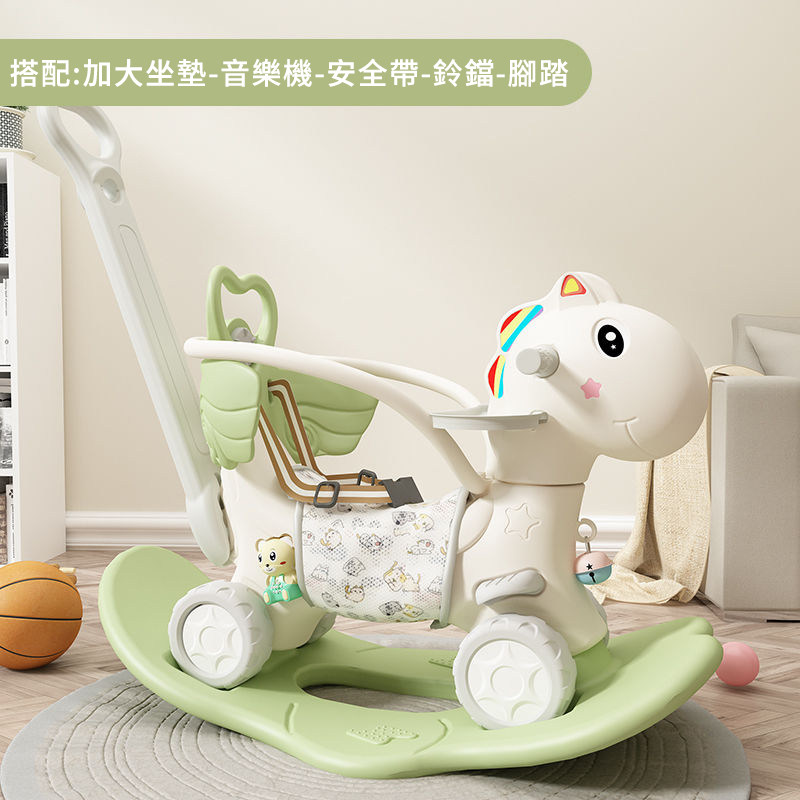 2分鐘前【大減價!大減價!】臺灣熱銷丨1-3週嵗生日禮物搖椅馬兩用搖搖車滑行車 兒童搖搖馬 - 普通輪(青椰綠)靠背+推桿護欄