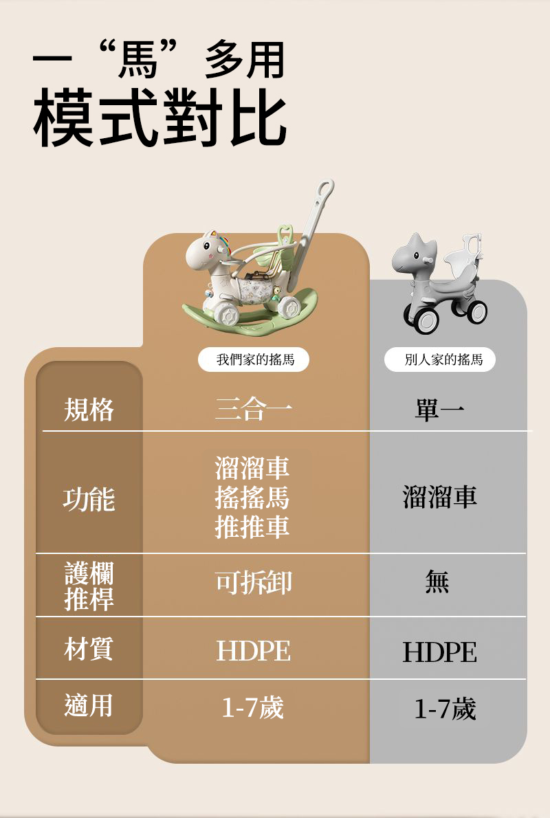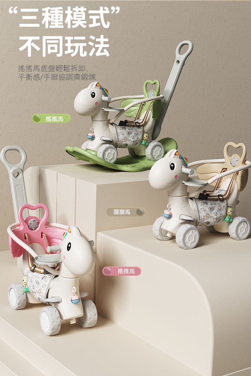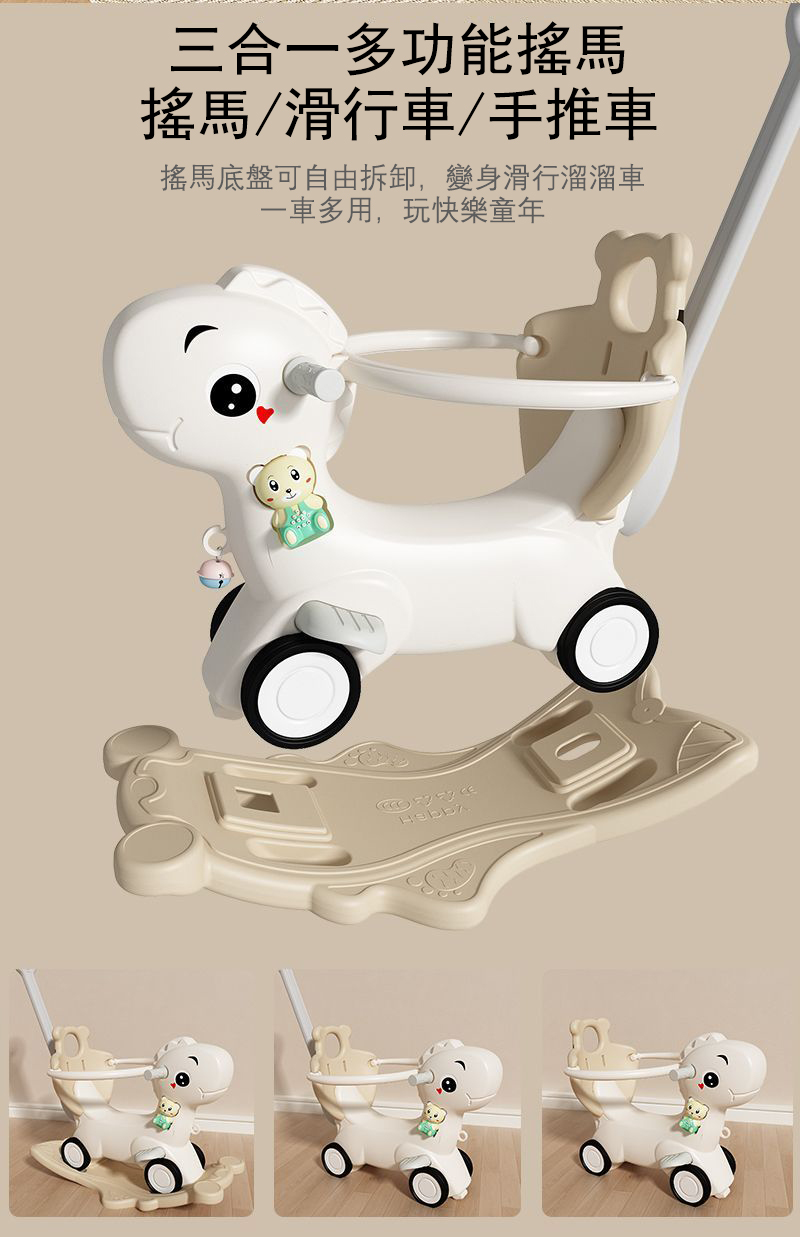 7分鐘前【大減價!大減價!】臺灣熱銷丨1-3週嵗生日禮物搖椅馬兩用搖搖車滑行車 兒童搖搖馬 - 普通輪(摩卡色)靠背+推桿護欄