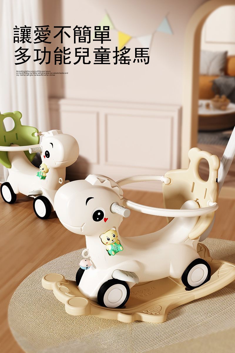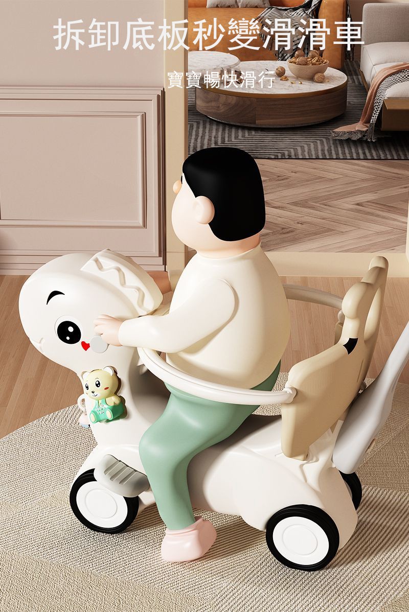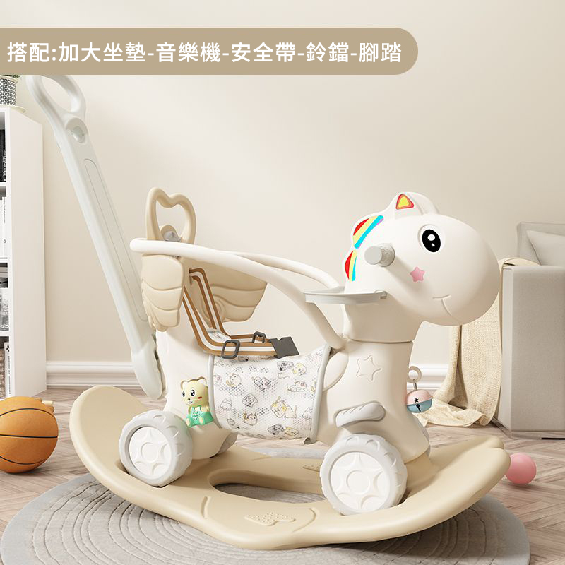 4分鐘前【大減價!大減價!】臺灣熱銷丨1-3週嵗生日禮物搖椅馬兩用搖搖車滑行車 兒童搖搖馬 - 加寬輪(摩卡色)大坐墊+餐盤+靠背+推桿護欄