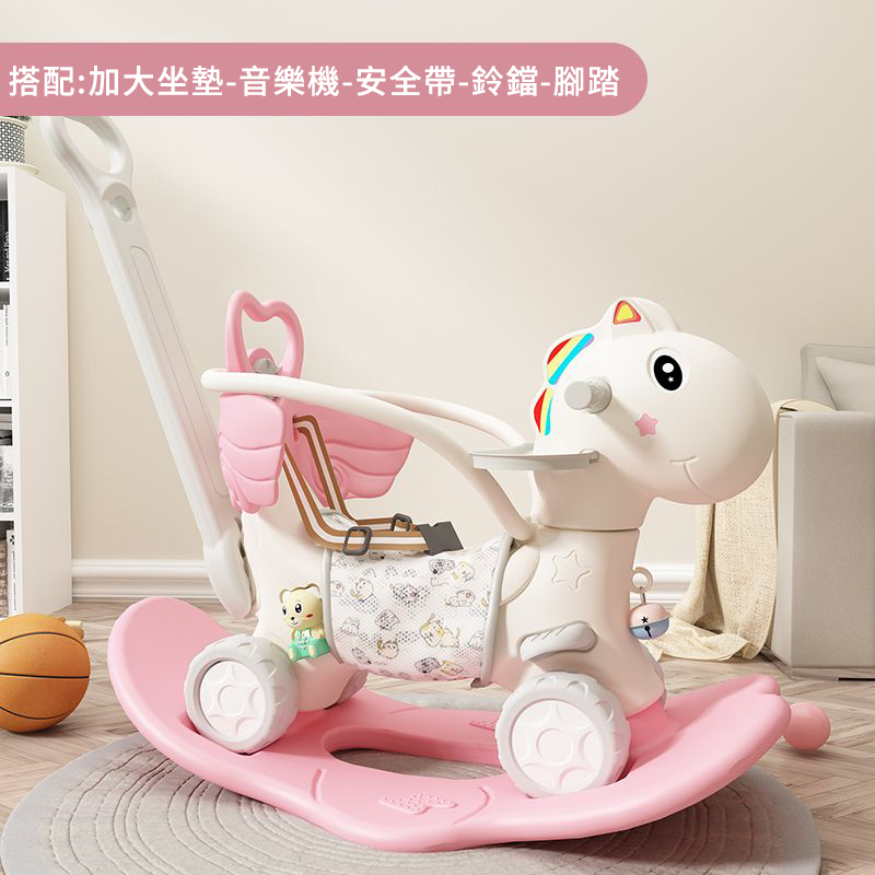 4分鐘前【大減價!大減價!】臺灣熱銷丨1-3週嵗生日禮物搖椅馬兩用搖搖車滑行車 兒童搖搖馬 - 普通輪(櫻花粉)靠背+推桿護欄
